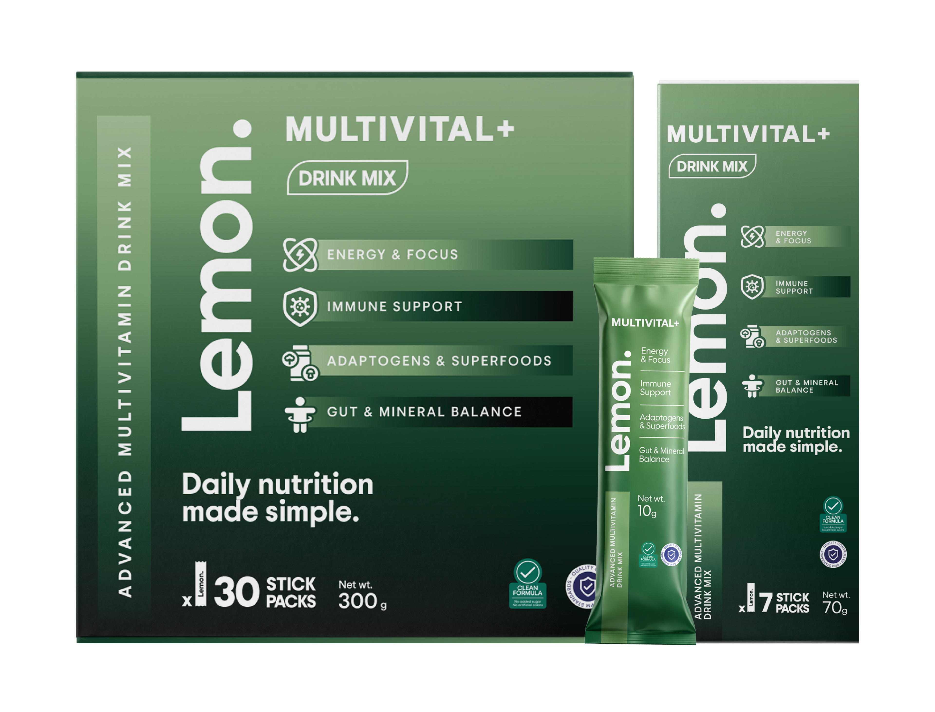 MULTIVITAL+ no es solo una mezcla básica de vitaminas. Está formulado como una base nutricional diaria que combina vitaminas y minerales esenciales con adaptógenos, superfoods y soporte para el equilibrio intestinal. Esto significa que no solo cubre carencias habituales, sino que apoya energía, enfoque, sistema inmune y bienestar digestivo en una sola toma. Mientras muchos multivitamínicos tradicionales se limitan a cubrir porcentajes mínimos recomendados, MULTIVITAL+ está diseñado para personas con un ritmo de vida exigente que buscan un soporte más completo. Además, su formato en stick permite una absorción práctica y cómoda, sin necesidad de tomar múltiples cápsulas al día. Es una solución integral pensada para simplificar tu rutina y optimizar tu rendimiento diario.
